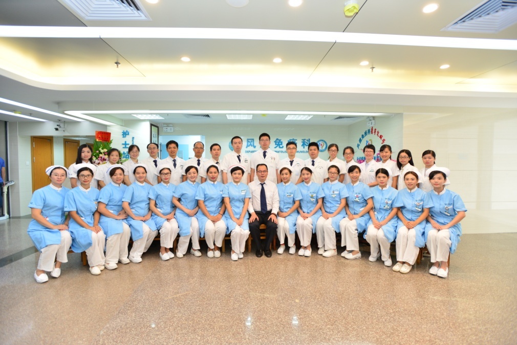 广东省第二人民医院风湿免疫科是我院重点学科。学科带头人李天旺教授为内科学博士,硕士研究生导师,哈佛大学访问学者,2018年获首届“广东医师奖”和第二届“广东好医生”10佳,2014~2018期间获4届好大夫在线“年度好大夫”称号,2016年被家庭医生在线评为“羊城好医生”,在广东省家庭医生协会2017年度“岭南名医录”中位列风湿专业名医第一位,已从事风湿病临床、教学与科研工作20多年,有丰富的风湿病临床与研究经验。专科现有教授、主任医师2人,副主任医师1人,主治医师3人,住院医师8人,主管技师1人,各级护理人员15人,其中博士3人、硕士10人;此外,专科聘用了外籍知名教授3名,以指导科室的临床和科研工作。专科开设有专家及专科门诊,设立了独立的专科住院病区及风湿免疫实验室,目前病区床位数及收治患者数均位于广东前列,收住的患者来自全国各地市及东南亚等国家。